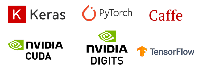 Our AI workstations come pre-installed with all the popular deep learning frameworks, including TensorFlow, PyTorch, Keras, Caffe 2.0, Caffe-nv, RAPIDS, Docker, Anaconda, MXNet, Theano, CUDA, and cuDNN.
