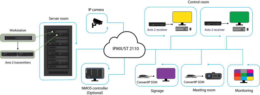 Avio 2 is fully compatible with IPMX and ST 2110, allowing smooth integration with other devices and systems. It streamlines workflows, reduces setup complexity, and uses NMOS open APIs for easy device discovery and connection management. With a standards-based IP KVM design, your setup stays ready for the future