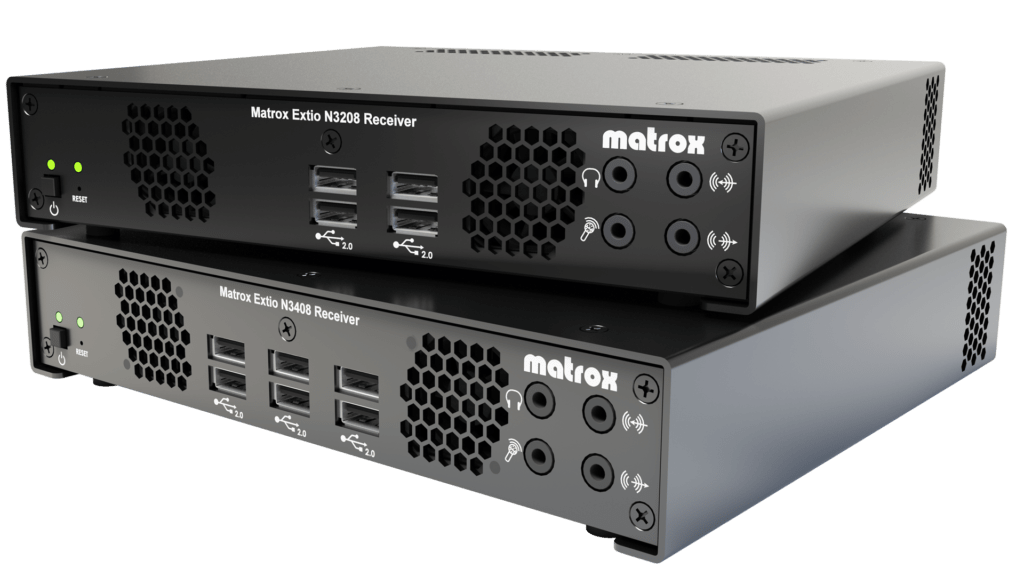Get more flexibility in your control room and digital workspace with Matrox® Extio 3 IP KVM extenders. Extio 3 gives AV and broadcast teams secure remote access, smooth collaboration, and quiet, clutter-free operator stations by placing computers away from the workspace. Designed for easy deployment, the Extio 3 Series supports scalable KVM matrix systems over standard IP networks.